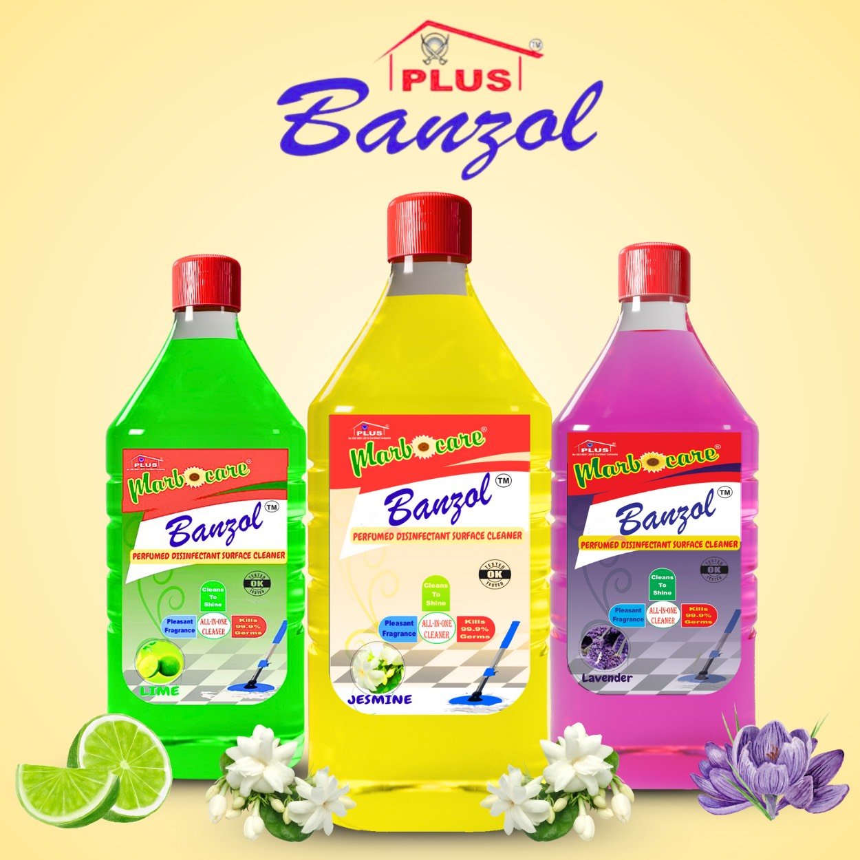 This benzol konium chloride based Banzol kills 99.9% germs & It is tested & proved in the laboratory. Banzol is available in three long lasting exquisite perfume like Lavender, Lime & Jesmine. It's no oil formula keeps floor shinning & fresh day long. This is a pet & kid safe product.